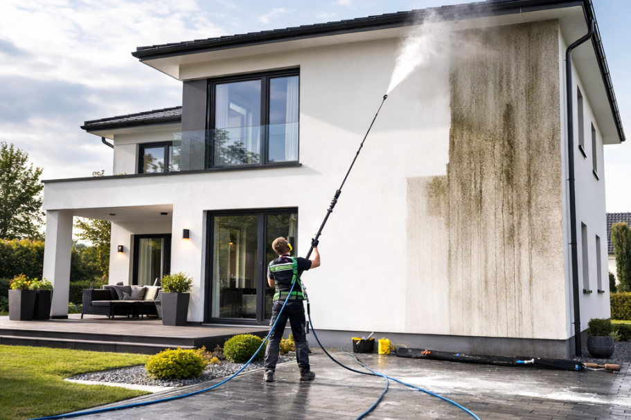 Mit moderner Technik entfernen wir Algen, Schmutz und Ablagerungen schonend und gründlich. Für eine saubere, gepflegte Optik und langfristigen Werterhalt Ihrer Immobilie.POWERED WITH KÄRCHER